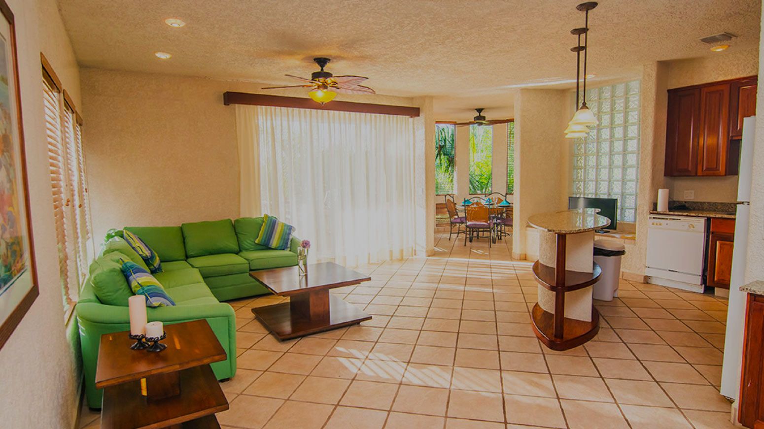 Fully furnished, these comfortable suites feature two bedrooms, large living room with sofa bed, a full kitchen with European style breakfast bar, dining room, and a covered terrace for lounging.
